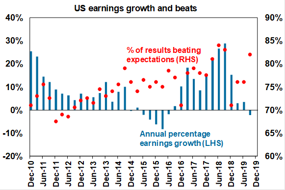 Consensus earnings forecasts for the quarter have increased to -2.3% year on year but the AMPโs Dr Shane Oliver thinks the earnings overall โare likely to end with a small positive.”
