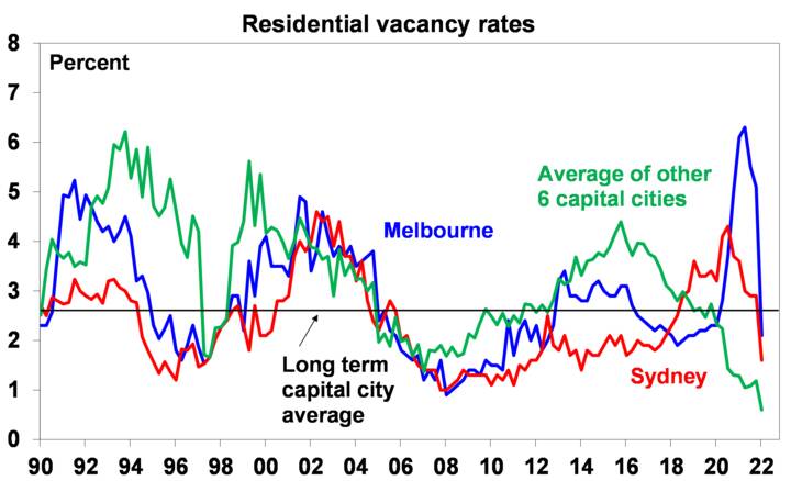 - Very low rental property vacancy rates suggest that the underlying property market remains tight.